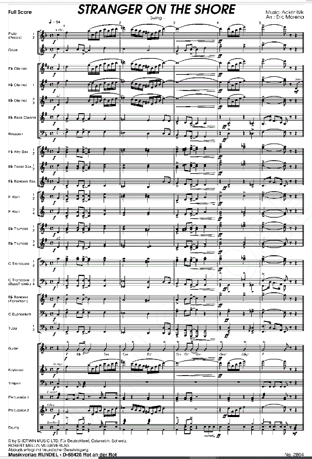 Stranger on the Shore - click here Stranger on the Shore (concert/wind band; Bb clarinet), full score and parts