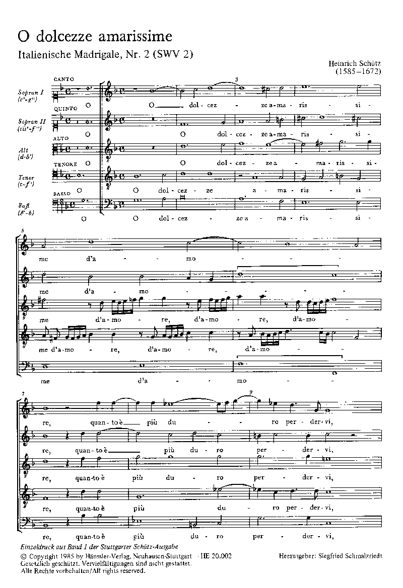 zweiter Teil des Madrigals 'O primavera' SWV 1