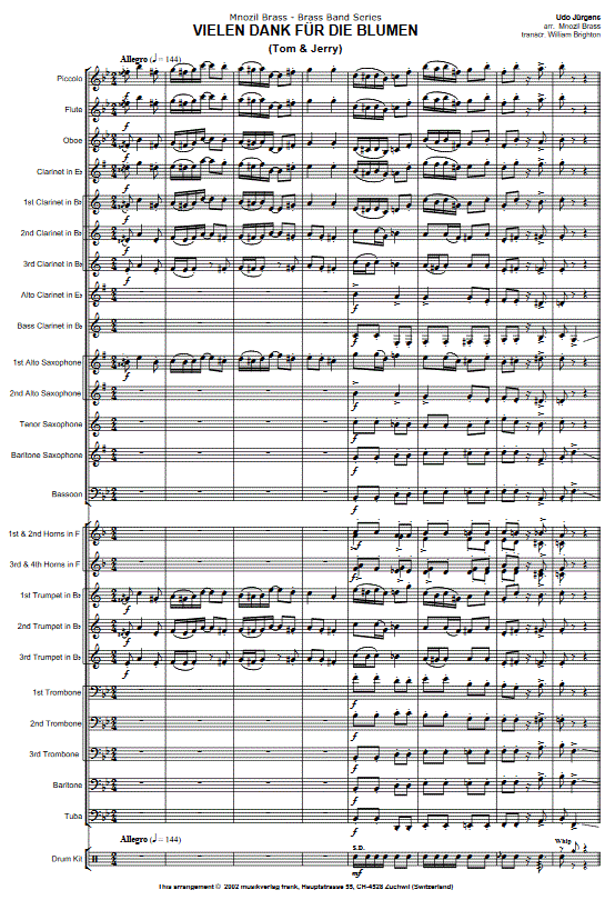 Vielen Dank für die Blumen (Tom und Jerry) - click here Vielen Dank für die Blumen (Tom und Jerry) (concert/wind band), full score and parts