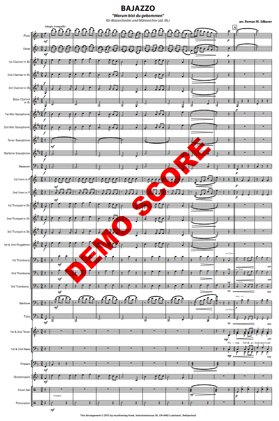 Bajazzo (Warum bist du gekommen) - click here Bajazzo (Warum bist du gekommen) (concert/wind band; mixed chorus), full score and parts