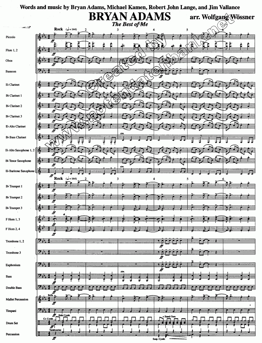 Bryan Adams - The Best of Me - click here Bryan Adams - The Best of Me (concert/wind band), full score and parts