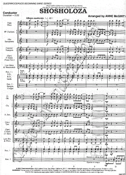 Additional info/contents A traditional folk song of South Africa and Zimbabwe, this song represents pride and strength and is presented in varying styles. Authentic African percussion instruments such as djembe, congas and bongos or talking drums can be used, if available. A wonderful addition to the multicultural repertoire at the beginning band level from the arranger of African Folk Trilogy!
