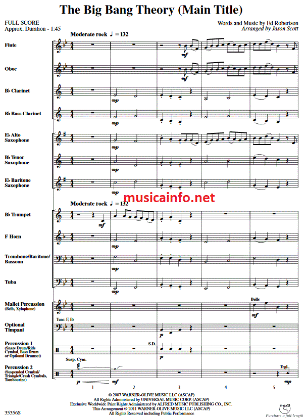 Big Bang Theory, The (Main Title) - click here Big Bang Theory, The (Main Title) (concert/wind band), full score