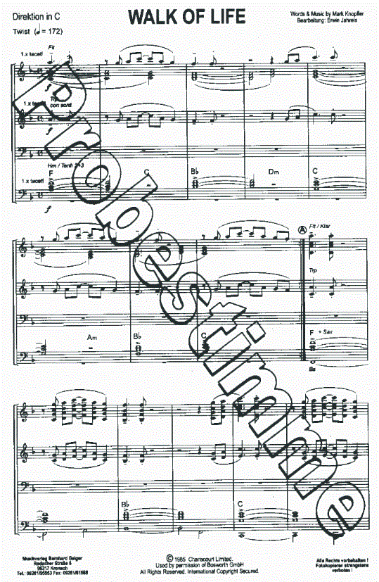 1. Flügelhorn in B / 1. Trompete in B (3x) 2. Flügelhorn in B / 2. Trompete in B (3x) 3. Trompete in B (2x) 1. Tenorhorn in B (2x) 2. Tenorhorn in B 3. Tenorhorn in B Bariton in C (2x) Bariton in B (2x) 1. Horn in F + 1. Horn in Es 2. Horn in F + 2. Horn in Es 3. Horn in F + 3. Horn in Es 1. Posaune in C + 1. Posaune in B 2. Posaune in C + 2. Posaune in B 3. Posaune in C + 3. Posaune in B 1. Bass in C + Bass in Es 2. Bass in C + Bass in B (2x)