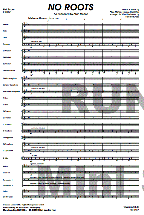 No Roots - click here No Roots (concert/wind band), full score and parts
