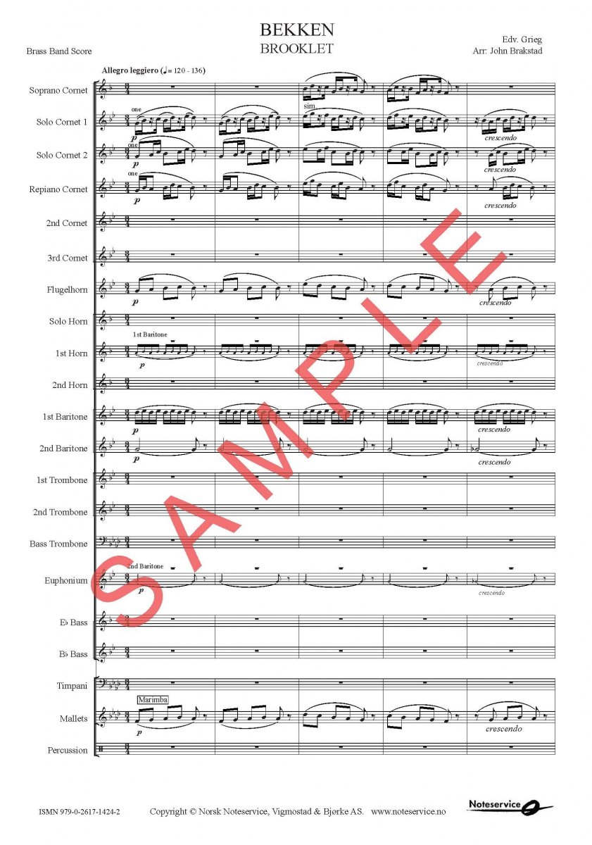 Additional info/contents «Brooklet» from "Lyric Pieces for Solo Piano" Op. 62 challenge the band technically in these brand new arrangements in separate editions for Brass and Concert Band by John Brakstad