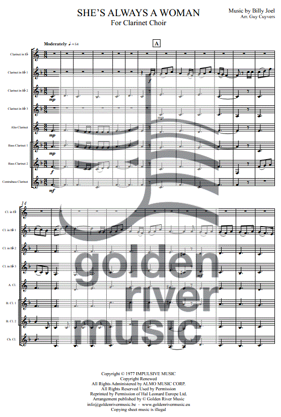 Additional info/contents She’s Always A Woman is a timeless ballad by Billy Joel, released in 1977 on the album The Stranger. This beloved classic has been beautifully arranged for clarinet choir, offering a refined addition to any repertoire.