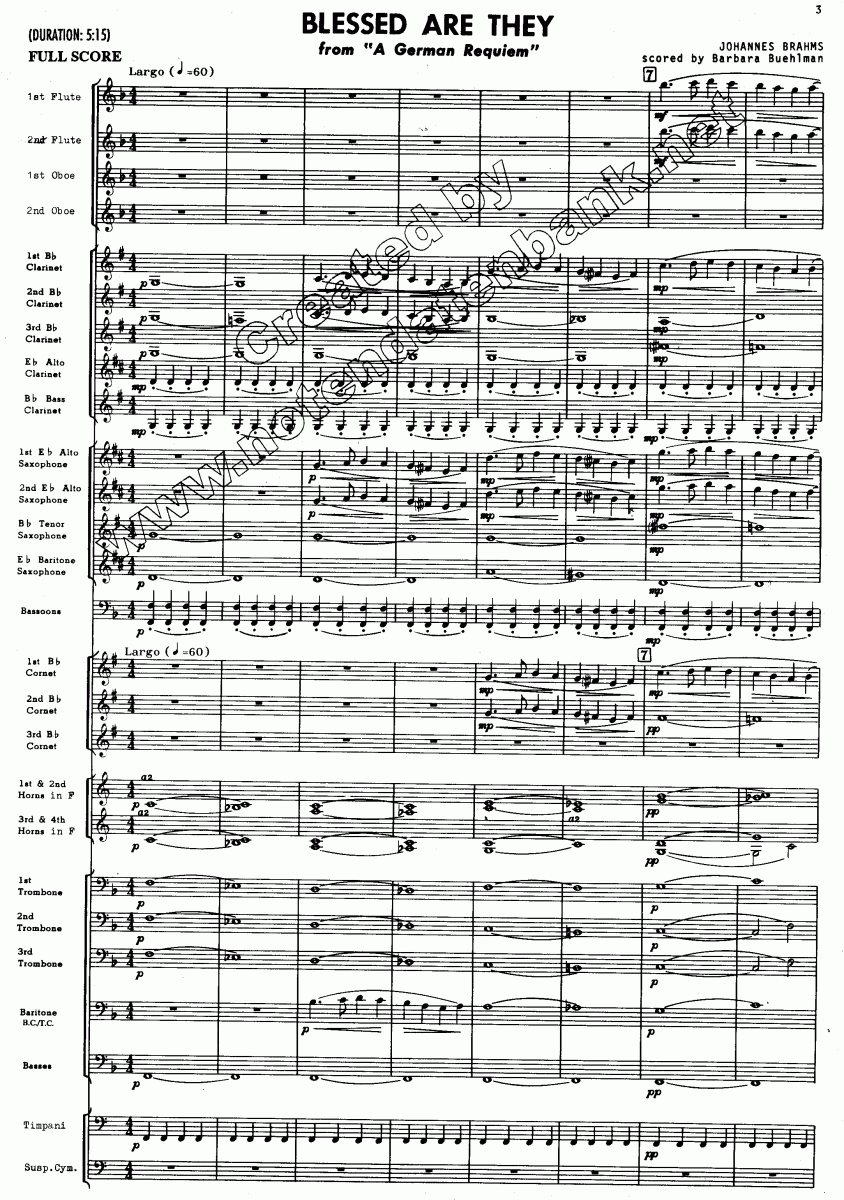Blessed are they (from 'A German Requiem') / Selig, die da Leid tragen - click here Blessed are they (from 'A German Requiem') / Selig, die da Leid tragen (concert/wind band), full score