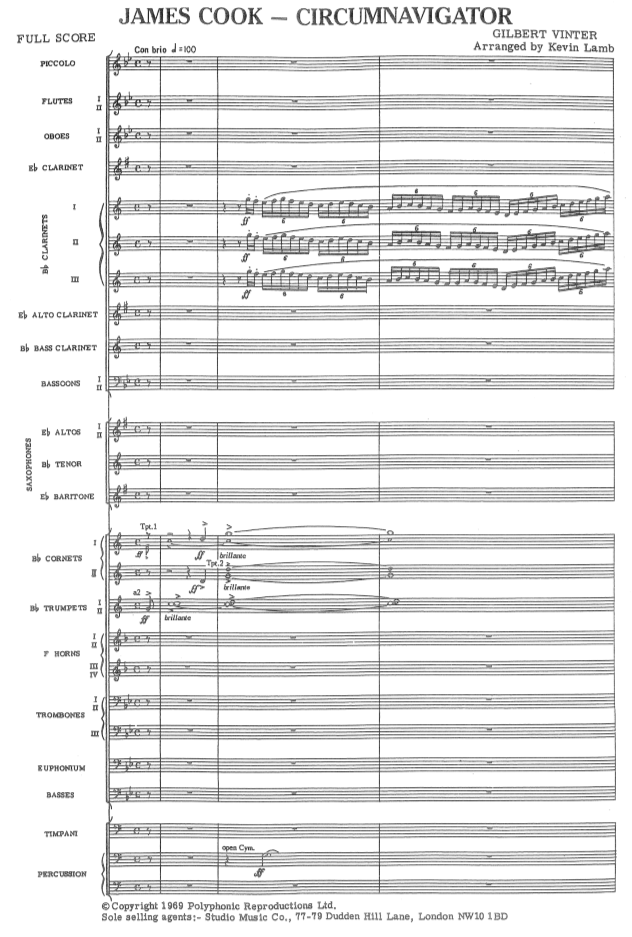 James Cook, Circumnavigator - click here James Cook, Circumnavigator (brass band), full score